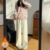 Spodnie damskie w jodełkę z szerokimi nogawkami na jesień i zimę, spodnie pluszowe są cienkie, luźne, codzienne, z wysokim stanem, z prostymi nogawkami