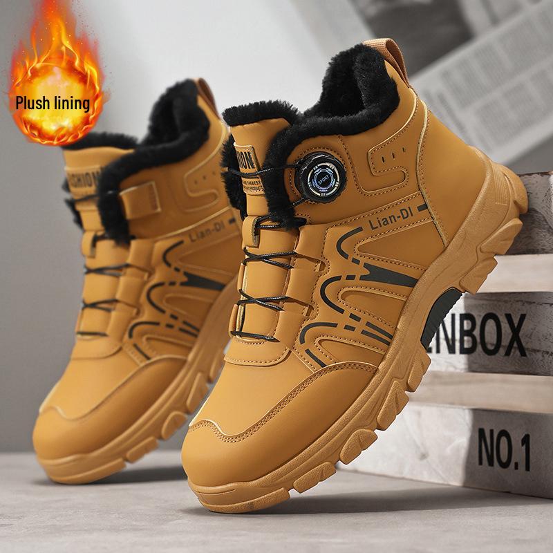 Zima 2025 Męskie wysokie buty bawełniane z grubą podeszwą i obrotową klamrą - Brytyjskie buty typu Martin