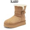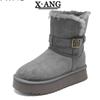 Winter leather wool integrated snow boots women's velvet thickened warm Northeast large cotton shoes thick-soled non-slip short boots
