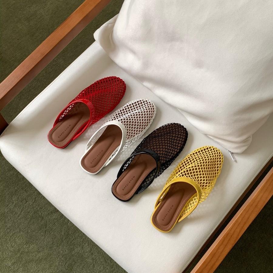 2025 spring and summer new fishing net hollow round head breathable light flat bottom half slippers women's fashion comfortable simple