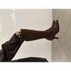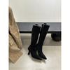 Retro pleated suede piled boots women's 2025 autumn and winter new pointed thin heel high heel boots slim knight boots
