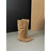 Jesień i zima 2025 nowe retro szpiczaste zamszowe buty na koturnie kobiecość cienkie plisowane kozaki rycerskie