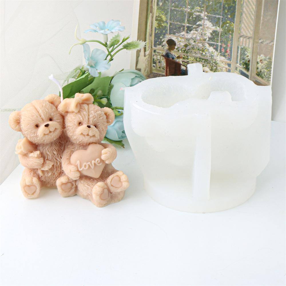 Silikonowa forma do świec w kształcie misia ślubnego 3D, forma do mydła, żywicy, gipsu, niedźwiedź przytulający, zwierzęta, rękodzieło, prezenty, dekoracje na rocznicę ślubu