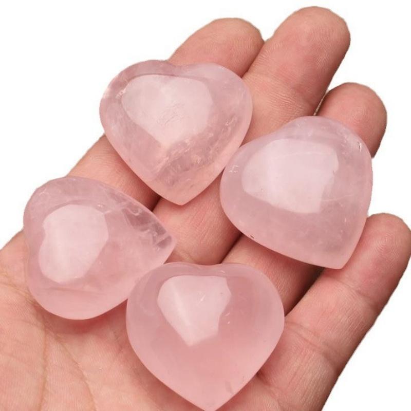 Natural Crystal Stone Love Heart Carving Reiki Healing Rose Quartz Decoration