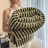 Imitation Rabbit Plush Striped Blanket Fluffy Soft Fleece Throw Blanket for Sofa Single Double Spring Autumn Warm Bed Blankets