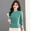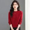 Women's Medium-Length Slim-Fit Round Neck Wool Sweater - Casual, Solid Color, Covers Belly, Perfect for Autumn and Winter.