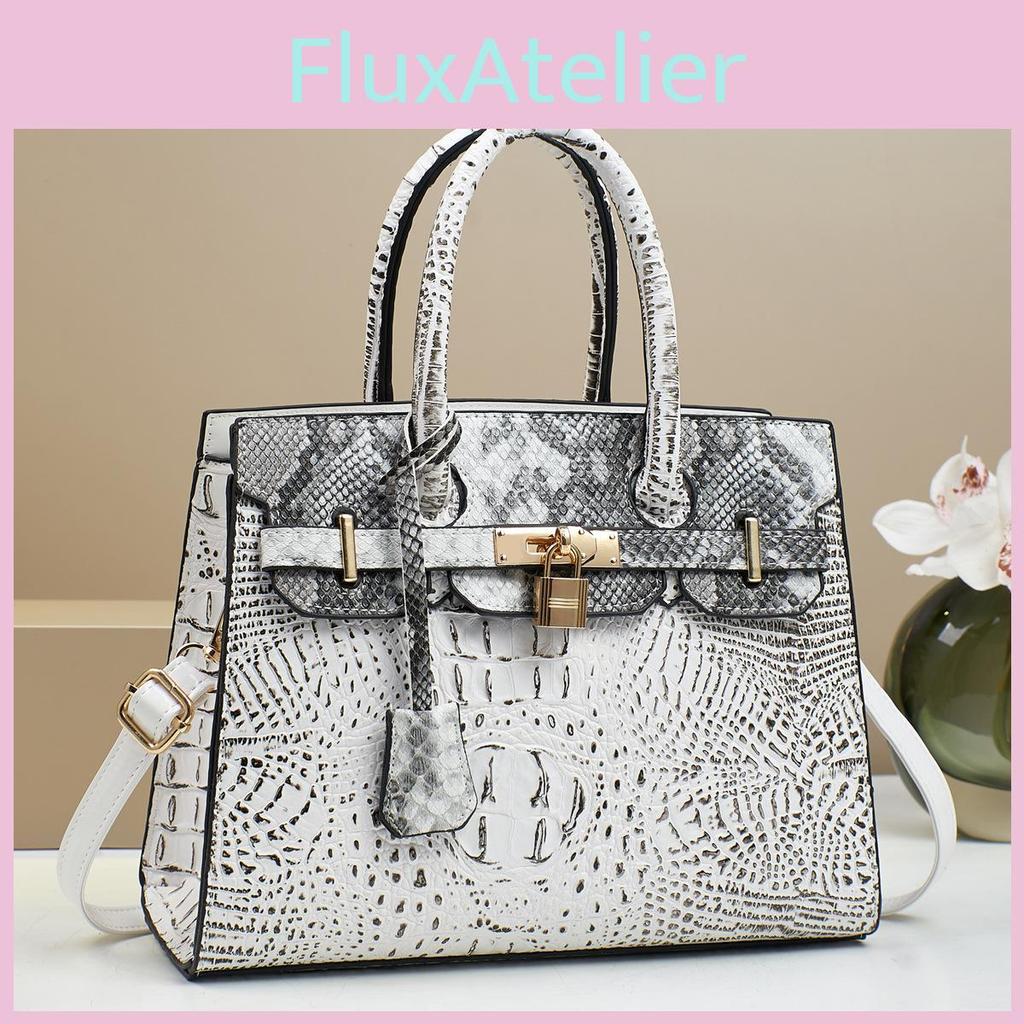 Fashion Blocked Color Gold Buckle Decor Crocodile Texture Women Bag Shoulder