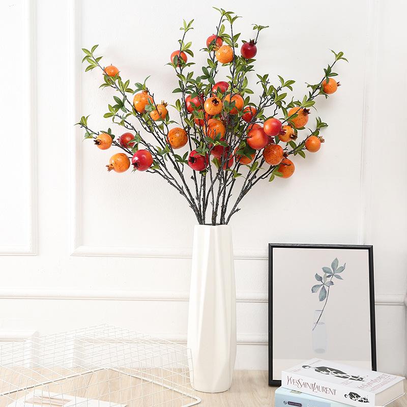 Hengrui Simulation Persimmon, Pomegranate, and Lemon Branches with Leaves for New Year Home Decoration