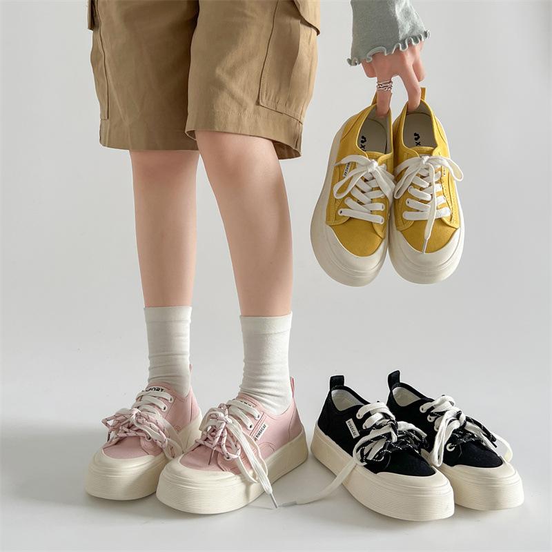 Codzienne lekkie damskie buty retro na grubej podeszwie płócienne buty z niską cholewką damskie nowe letnie codzienne miękkie buty na podeszwie