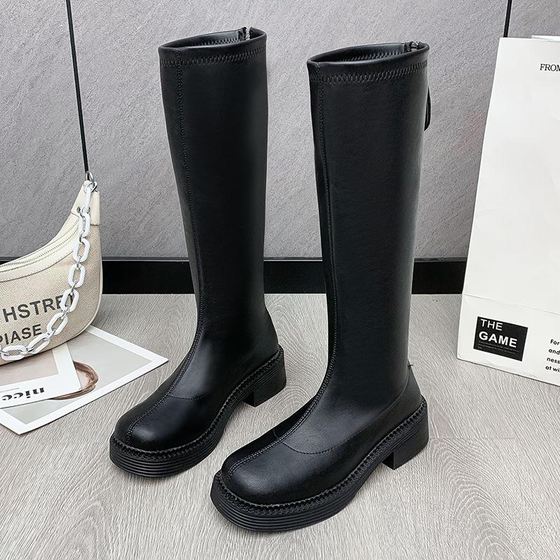 autumn winter new plus size long boots for women with British style round toe square heel warm high boots with back zipper
