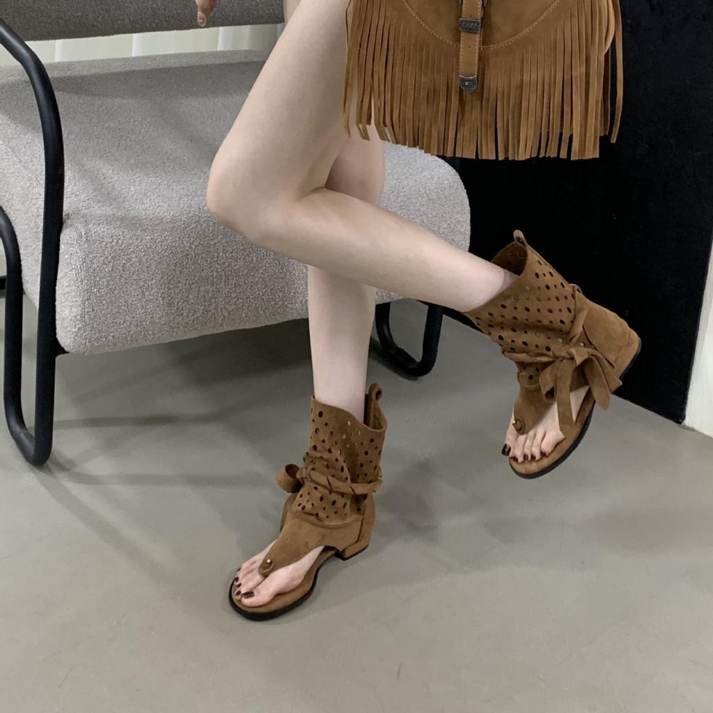 Retro hollow not stuffy feet summer personality cool boots women's 2025 new fashionable straps flat short boots sandals