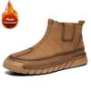 Marka Zimowe Pluszowe Buty Męskie Wodoodporne Skórzane Męskie Buty Śniegowce Outdoorowe Na Zamek Kostki Codzienne Męskie Buty