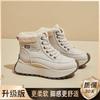 Damskie buty sportowe na wysokiej podeszwie z polaru 2025 jesień i zima nowe ciepłe dwu-bawełniane skórzane wodoodporne sportowe casualowe buty na platformie daddy dla kobiet