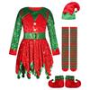 Dzieci Dziewczynki Święty Mikołaj Xmas Elf Czerwona Sukienka Skarpety Czapka Zestawy Dzieci Boże Narodzenie Nowy Rok Kostiumy Cosplay Strój do Występu Odgrywanie Roli