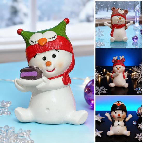 Świąteczna Figurka Bałwana Mini 3" Żywica Siedzący Bałwan Dekoracja Stołu do Domu Biurko Półka Kominek Półka Kominkowa Zimowe Świąteczne Artykuły na Imprezę