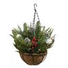 Świąteczne wiszące kosze na zewnątrz Pre-lit sztuczny kosz ze światełkami LED Szyszki jagody do dekoracji świątecznej werandy ogrodu