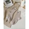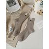 Damskie jesienno-zimowe ciepłe jednokolorowe uniwersalne materiałowe wełniane podkolanówki w pionowe paski z logo i guzikiem