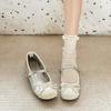 Francuskie bajkowe zamszowe buty na płaskim obcasie z kwadratowym noskiem damskie wiosna i jesień 2025 nowe kokarda do pracy płaskie buty Mary Jane