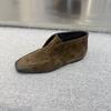 Wersja ze skóry owczej~ Brytyjski styl matowy zamsz kwadratowy nosek jednoprzepustowe mokasyny damskie 2025 jesień i zima krótkie botki buty jednorazowe