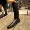 Korean version niche simple row style flat-bottomed medium boots thin boots women 2025 long tube square head but knee high boots