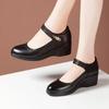 Soft leather cheongsam model catwalk shoes women's middle-aged and elderly non-slip mother shoes round head white wedge heel soft sole single shoes