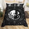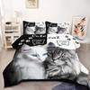 Black Cat Duvet Cover Set Gradient Line Cute Animal Bedding Set with Pillowcase Teens Kids Adults Room Decor Queen Duvet Covers