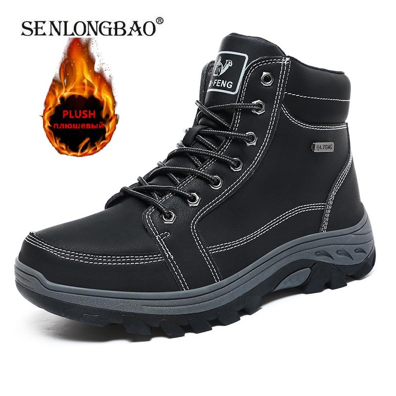 New Winter Men keep Warm Plush Snow Boots Men Casual Shoes Waterproof Work Shoes Outdoor Men Lace-Up Ankle Boots Big Size 39-48