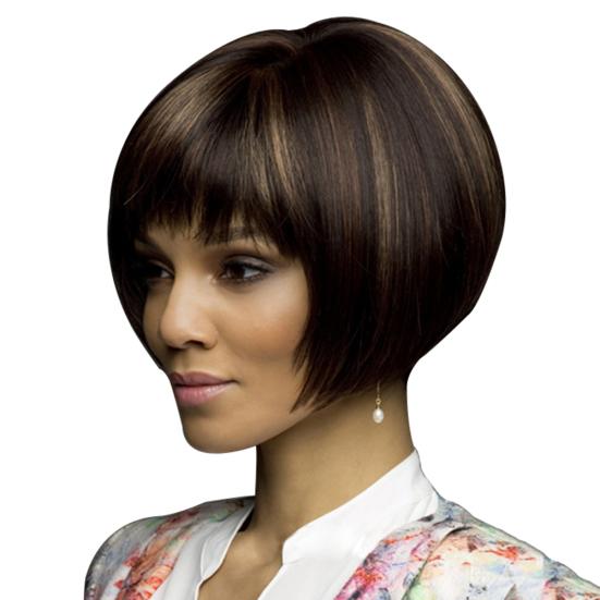 Fajna Kobieta Krótkie Proste Bob Party Naturalnie Cosplay Peruki Mieszanka kolorowych włosów