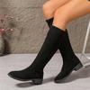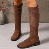 Damskie Modne Kozaki Wiosna i Jesień Nowy Styl Okrągły Nosek Tylny Zamek Kozaki do Kolana Kobiety Szyte Wysokie Kozaki