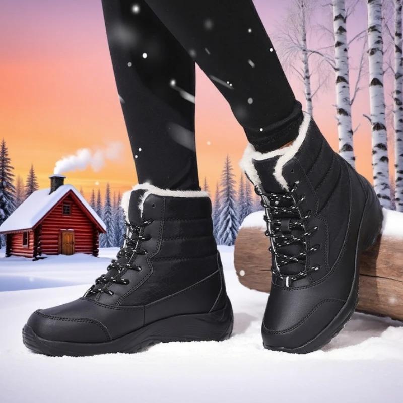 Zimowe Śniegowce Damskie Ciepłe Z Podszewką z Futra Wodoodporne Antypoślizgowe Kozaki do Połowy Łydki Modne Outdoorowe Buty do Narciarstwa i Chodzenia dla Kobiet