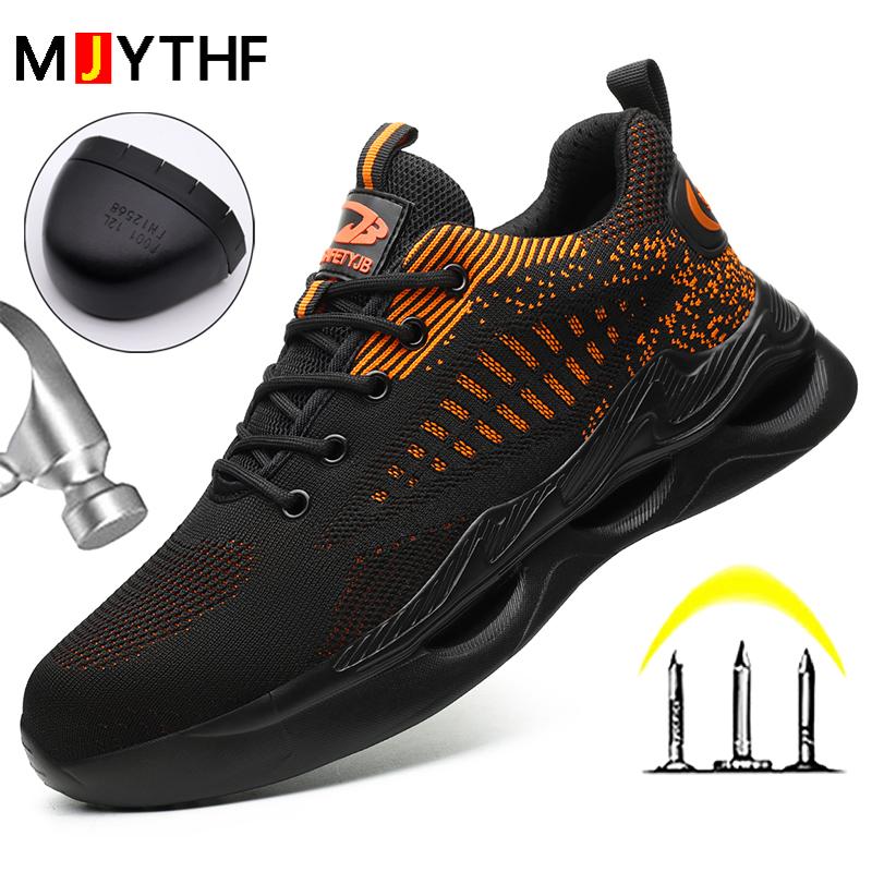 Oddychające Buty Bezpieczeństwa Męskie Lekkie Trampki Robocze Buty z Podnoskiem Stalowym Puncture-Proof Buty Ochronne Niszczone Męskie Buty