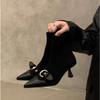 New Design Belt Buckle Ankle Boot Women Fashion Pointed Toe Zipper Thin Low Heels Banquet Party Female Shoes