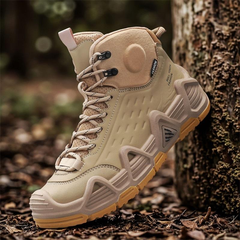 Men Tactical Boots with Straps for Combat Training Waterproof Straps Outdoor Hiking Breathable Multifunctional Motorcycle Shoes