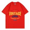 Letnia męska retro moda z nadrukiem litery 100% czysta bawełna T-shirt, luźny i oddychający, uliczny top z okrągłym dekoltem i krótkim rękawem