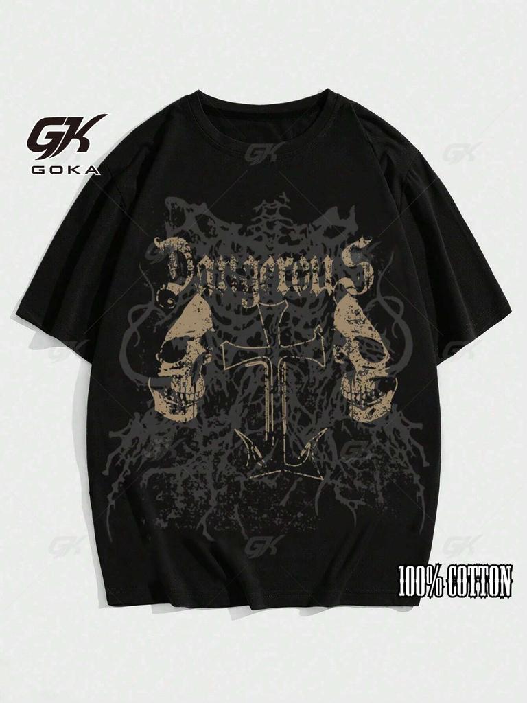 Grunge Punk Czaszka Nadrukowany Damski Męski Unisex Bawełniany T-shirt Luksusowa Marka Vintage Duży Rozmiar Top Casual Krótki Rękaw Klasyczna Koszulka 4xl
