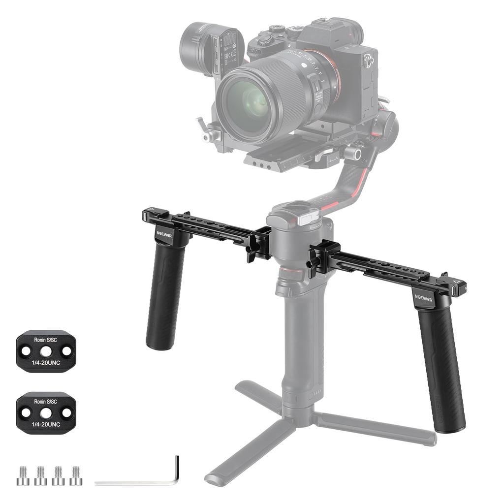Neewer Podwójny uchwyt ręczny Kompatybilny z RS4 RS3 Ronin i SC Zmontowany zestaw podwójnych uchwytów z dwoma mini NATO szybkozłączkami NATO i śrubami RS4, Pro, RS3,
