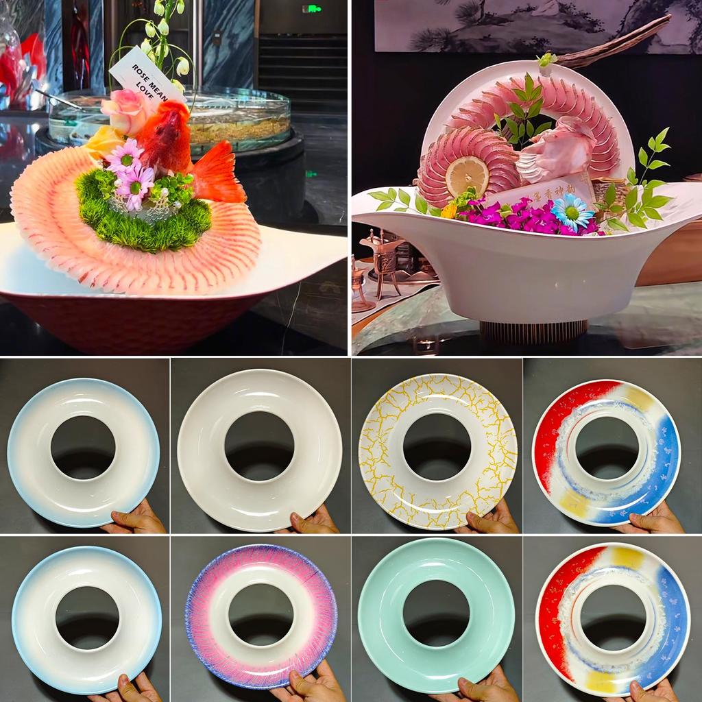 Talerz Sashimi Xianci: Wysokiej klasy ozdoby do prezentacji owoców morza - Okrągły plaster ryby do wystroju hotelowego