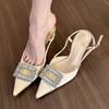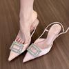 Pink pointed rhinestone high heels women's spring 2025 new satin stiletto rear empty light mouth sandals