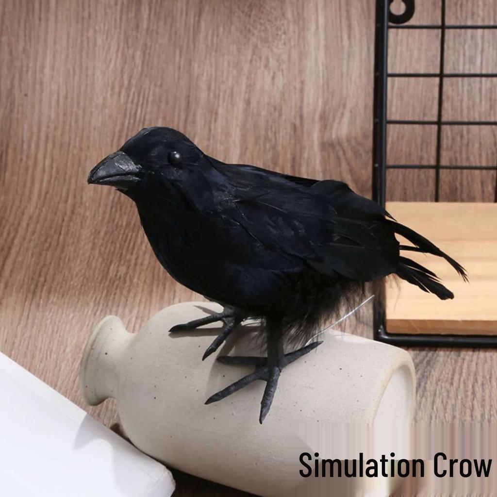 Duża kreskówkowa ozdoba wrona: Prawdziwe Pióra Ptak na Boże Narodzenie, Halloween i do Nordyckiego Wystroju Domu