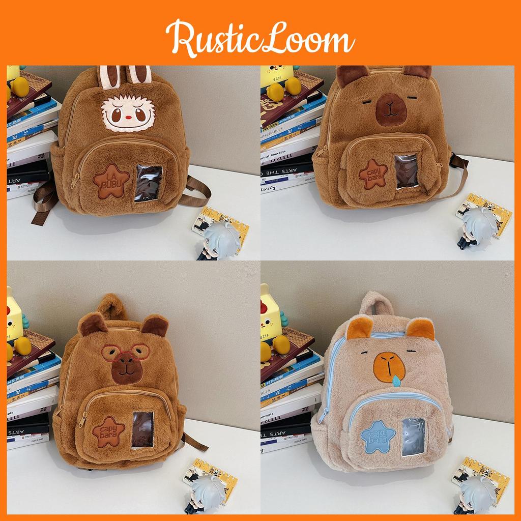 Capybara Plush Cartoon Backpack With Front Pouch For Teen Travel School