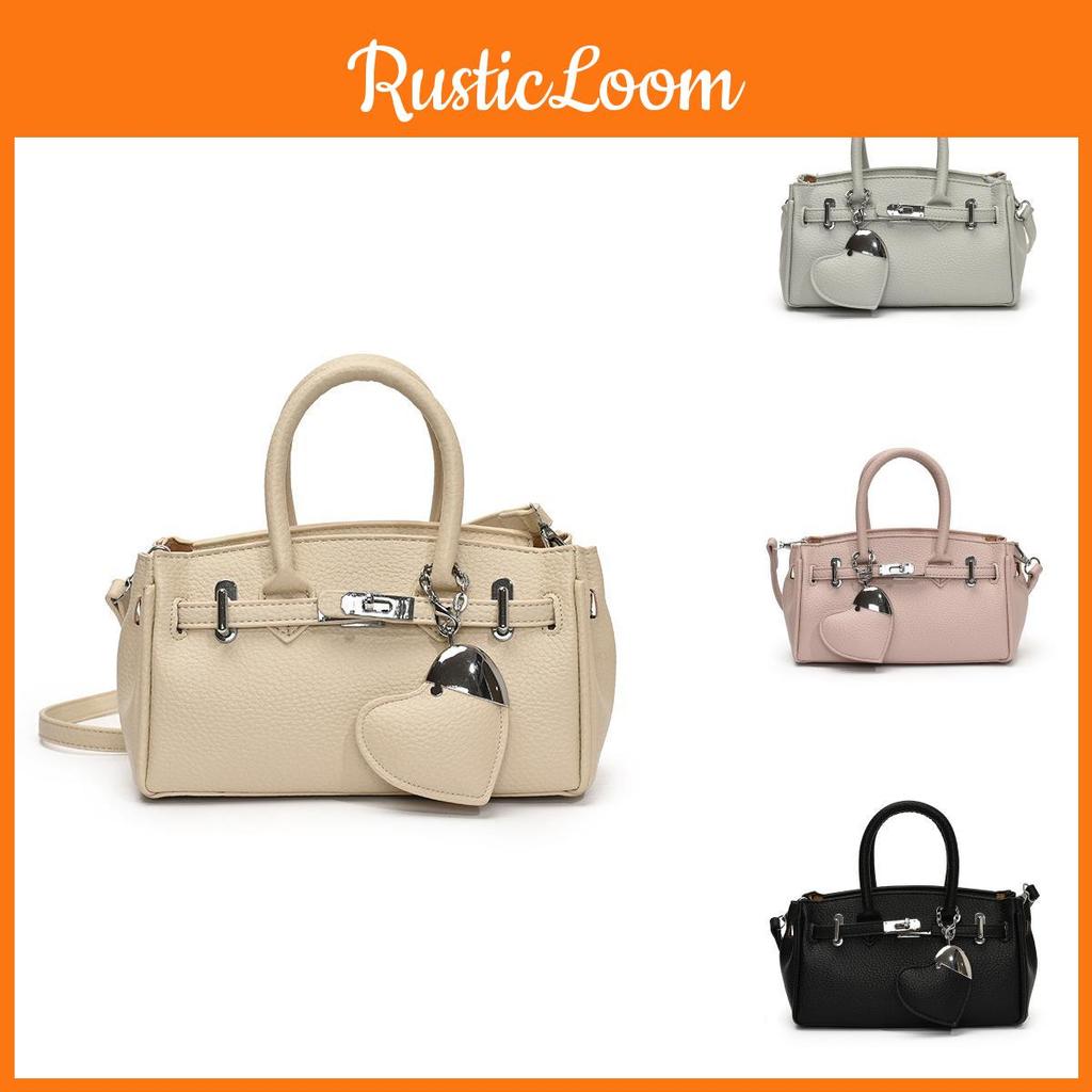 Wisiorek Symbol Serce Złoty Ręczny Portfel Szyte Detale Pasek na Ramię Biurowy
