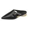 Fashion 2025New Hollow-out Baotou Semi-slippers Summer New Metal Chain Pointed Toe Shallow Mouth Thick Heel Wear Lazy Drag
