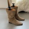 Fashion Fashion Pleated Ladies Ankle Modern Boots With Low Heel Shoes Pointed Toe Flock Women Short Boots Female Pumps Shoes