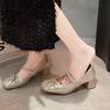 Fashion French Retro Mary Jane Shoes Woman Beige Elegant Woman Heeled Shoes Comfort Versatile Bowknot Single Shoes Women Chaussure Femme