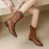 Modne jesienno-zimowe skórzane damskie buty do połowy łydki z czubkiem na średnim obcasie, damskie półwysokie kozaki, nowe, rockowy szyk i elegancja, kozaki Gyaru