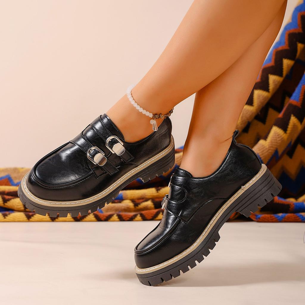 Jesień 2025 Nowe Platformy Mokasyny Muffinowe Damskie Duże Rozmiary Okrągły Nosek Styl Brytyjski Niskie Buty