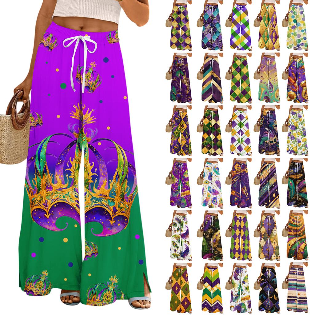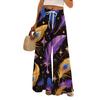 Damskie Luźne i Codzienne Spodnie z Szerokimi Nogawkami z Nadrukiem, z Elastycznym Pasem, Sznurkiem i Kieszeniami