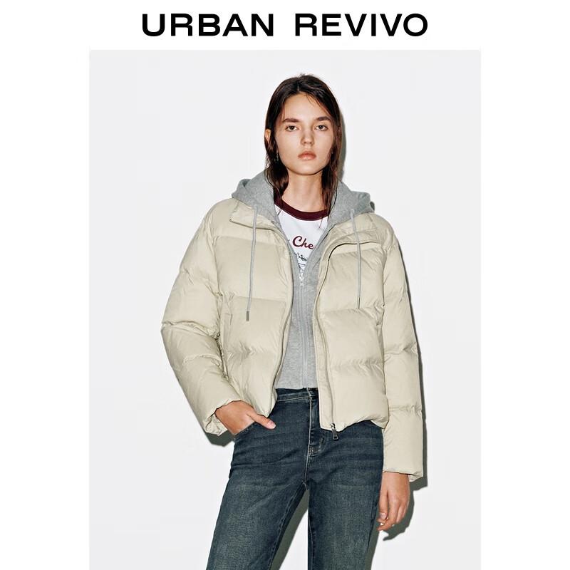 UR Women's Casual Color-block Faux Two-piece Hooded Drawstring Down Jacket