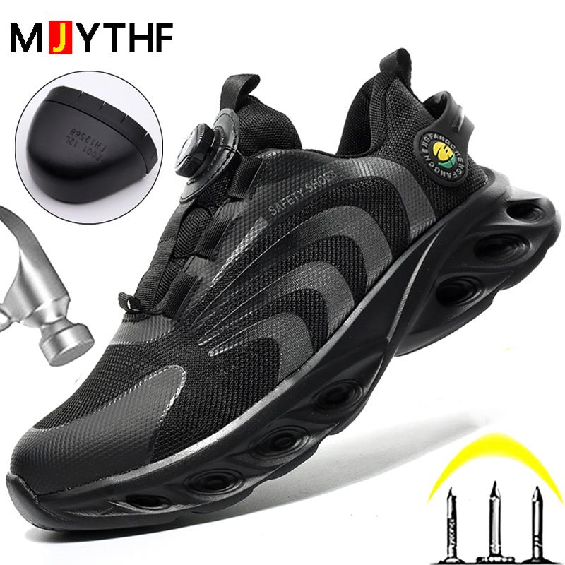 Rotary Buckle Men Safety Shoes Work Boots Safety Steel Toe Shoes Men Anti-Smash Anti-Puncture Work Sneakers Indestructible Shoes
