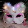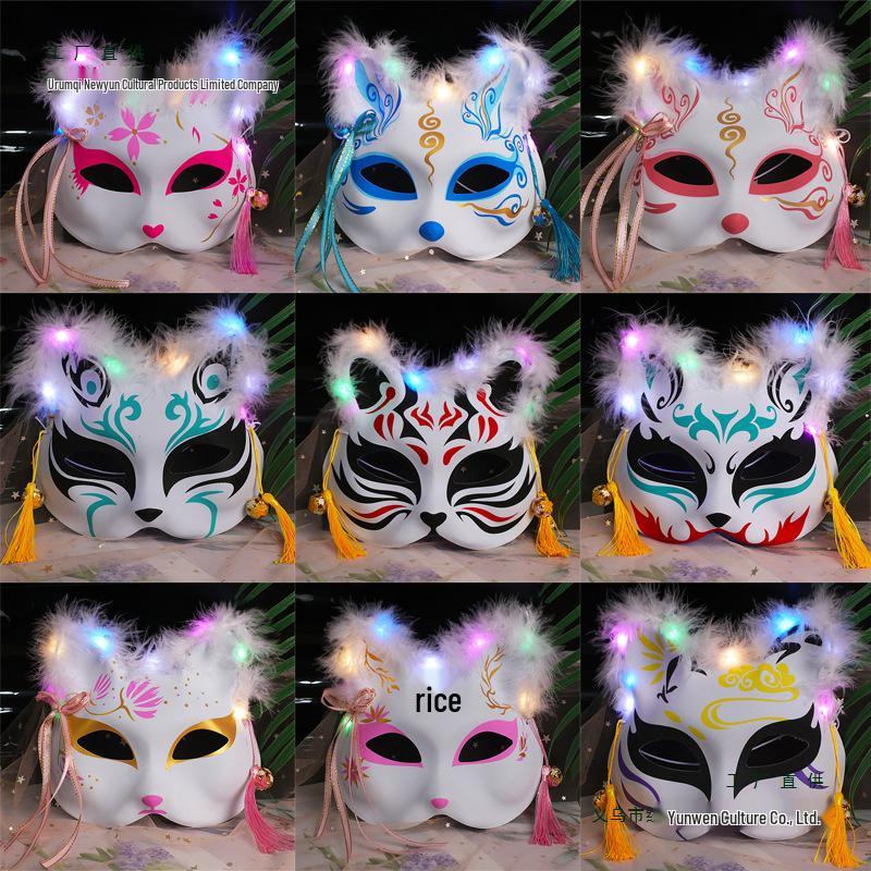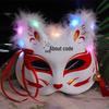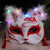 Świecąca Półtwarzowa Maska Lisa: Starożytny japoński styl anime dla kobiet i dzieci - Idealna dekoracja na Halloween